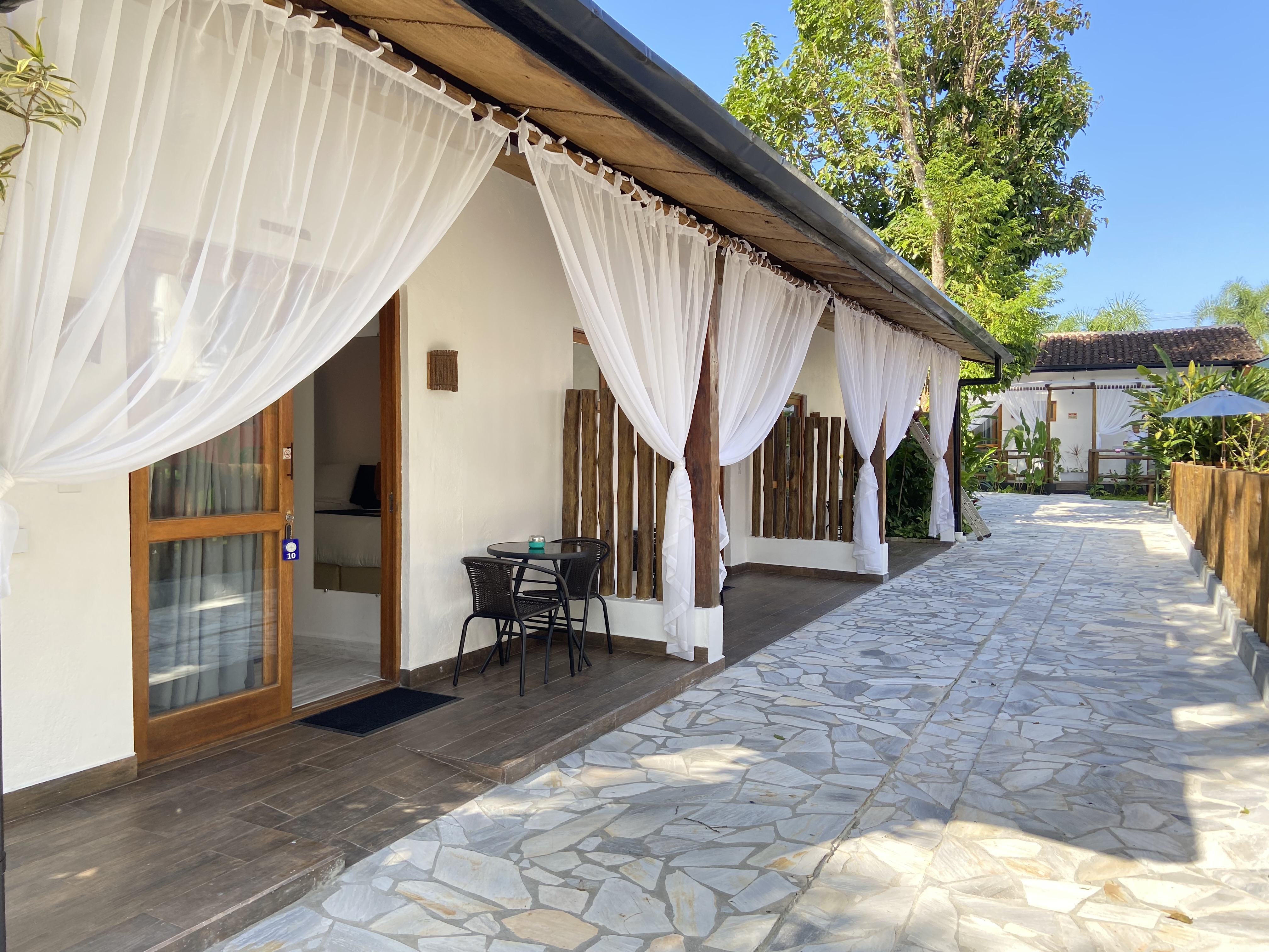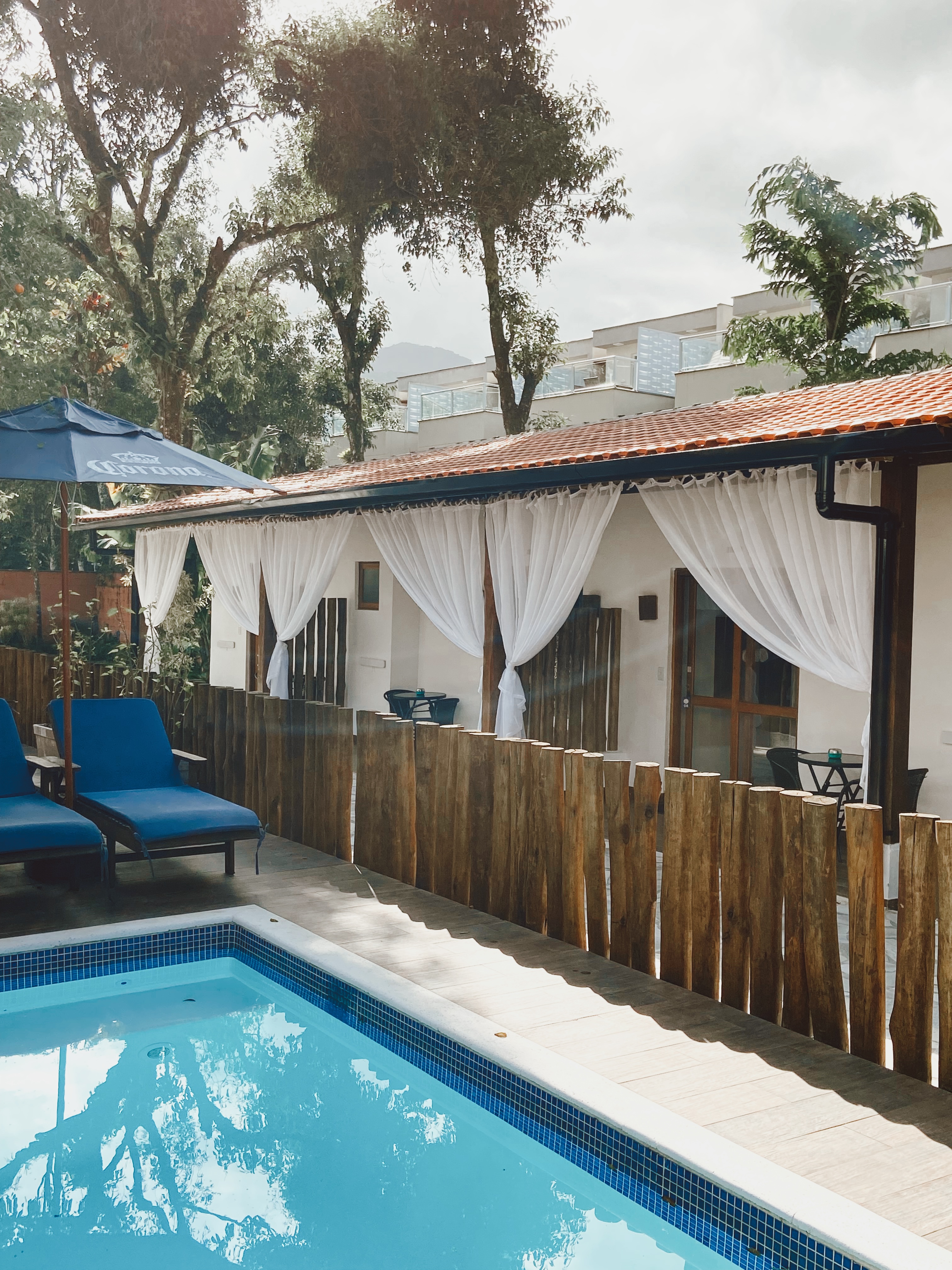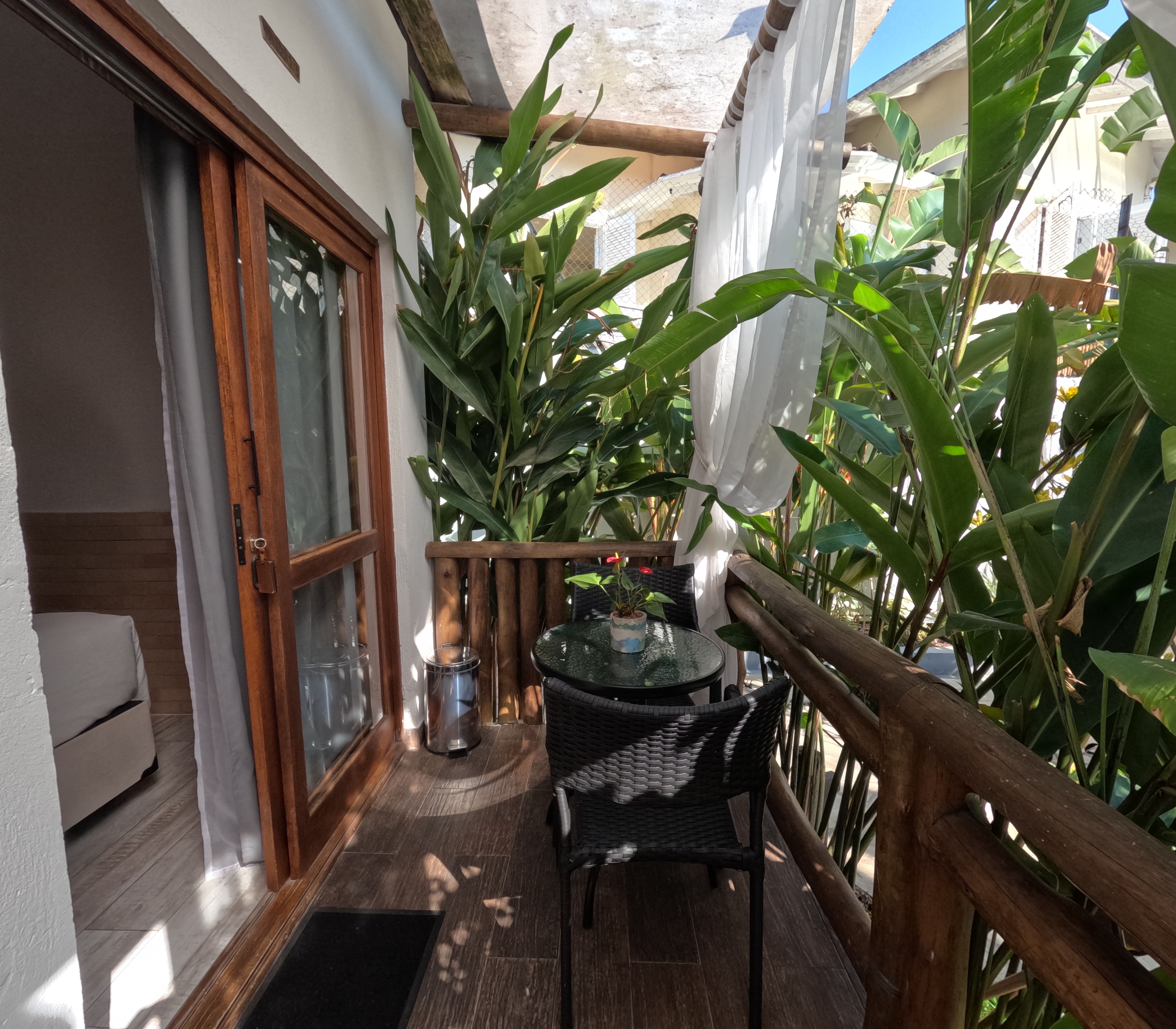 Quarto com 17m², contendo 1 cama de casal + 1 cama de solteiro Este quarto oferece um terraço com vista parcial para a piscina, ideal para quem deseja um espaço e área ao ar livre.