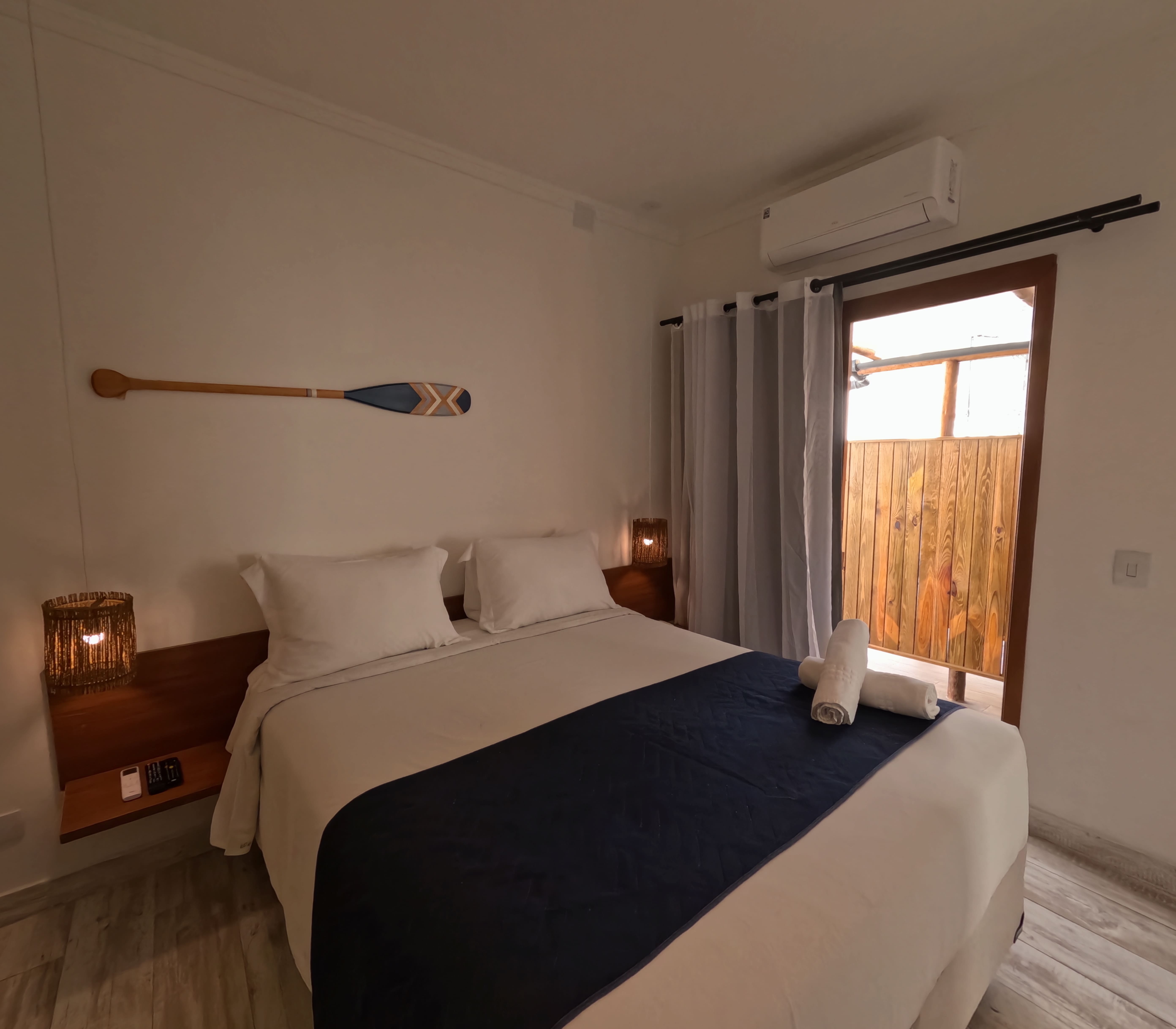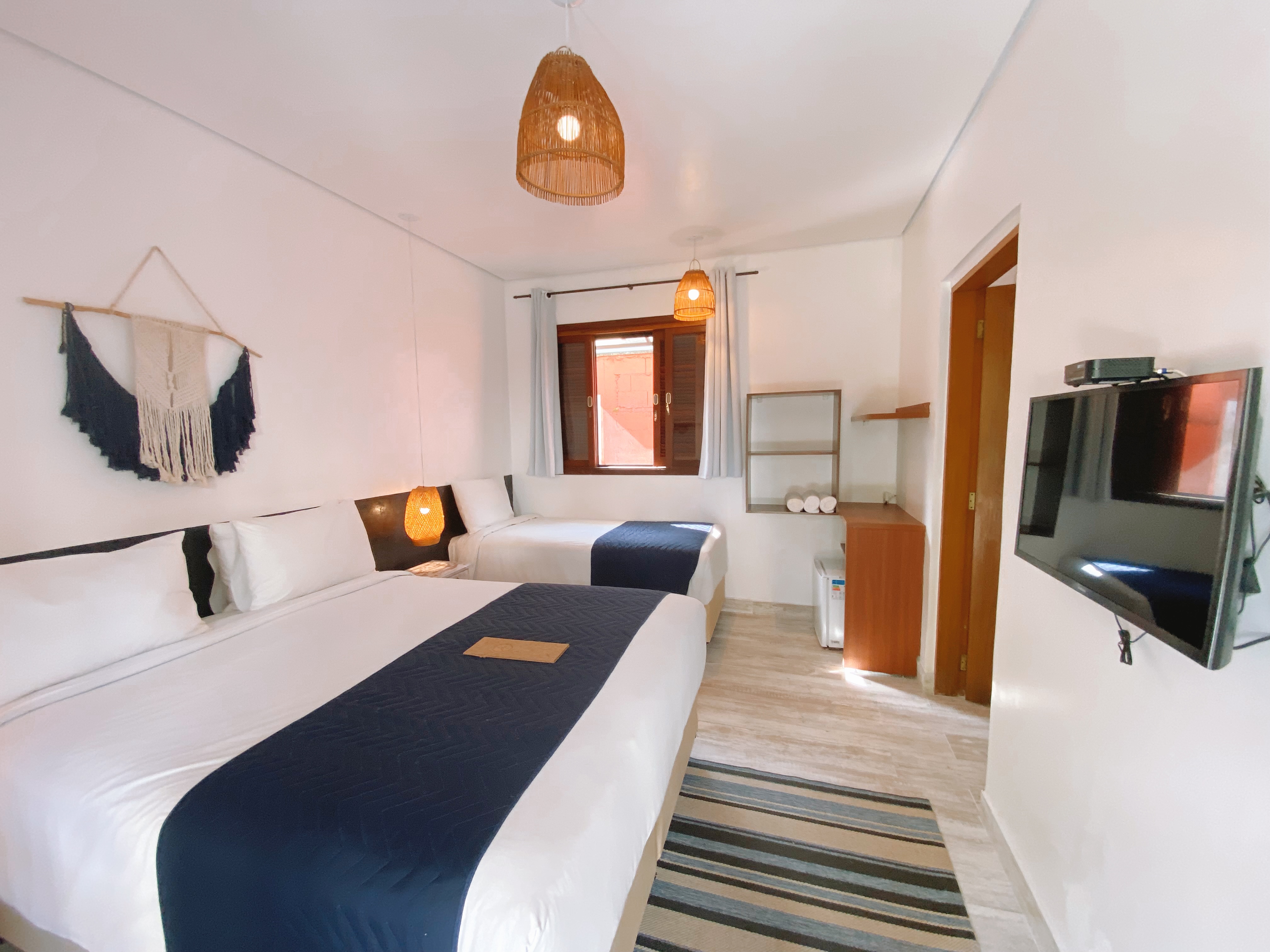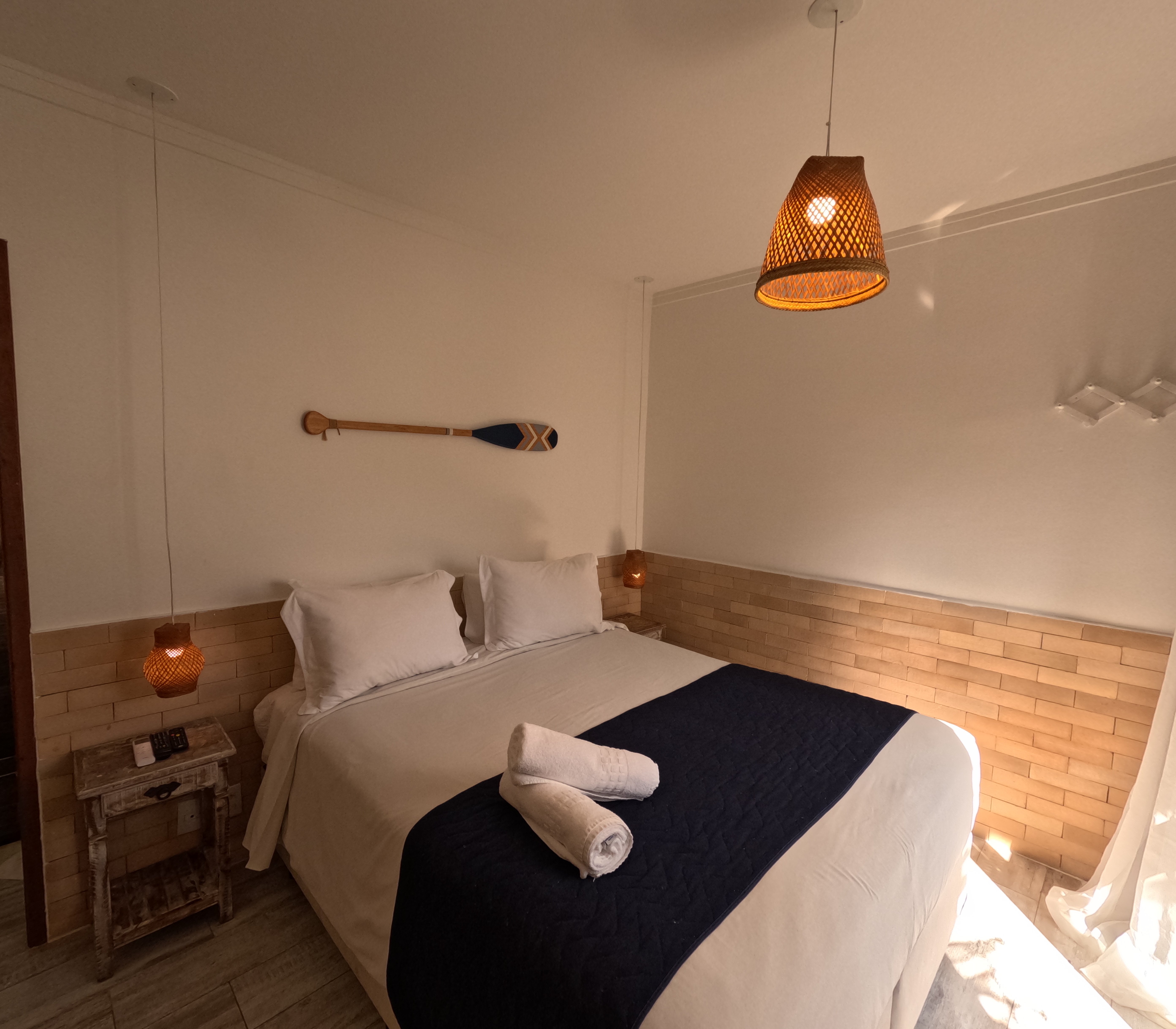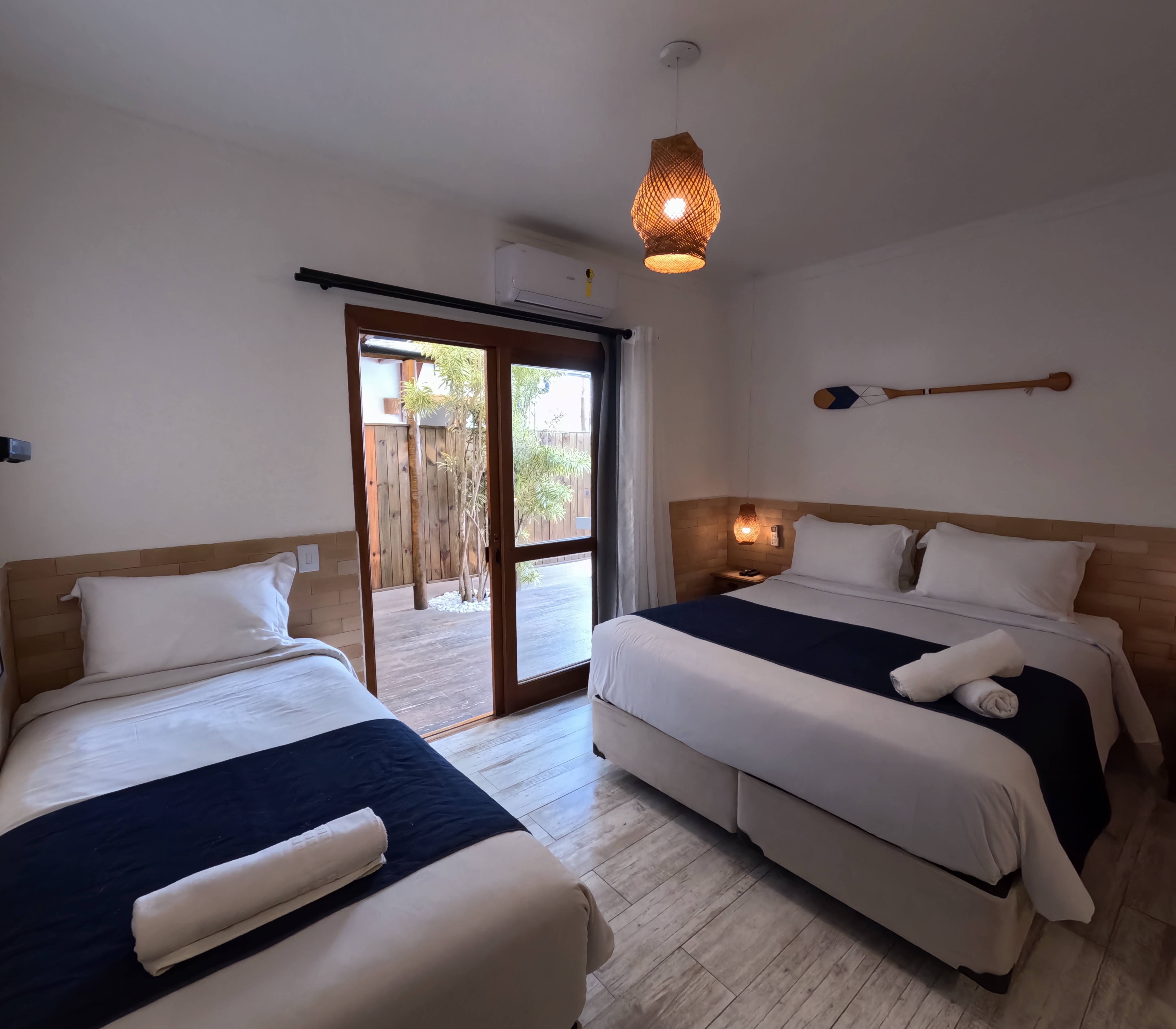 Quarto com 16m², contendo 1 cama de casal + 1 cama de solteiro Este quarto é perfeito para pequenas famílias ou grupos de amigos, acomoda até três pessoas com conforto.