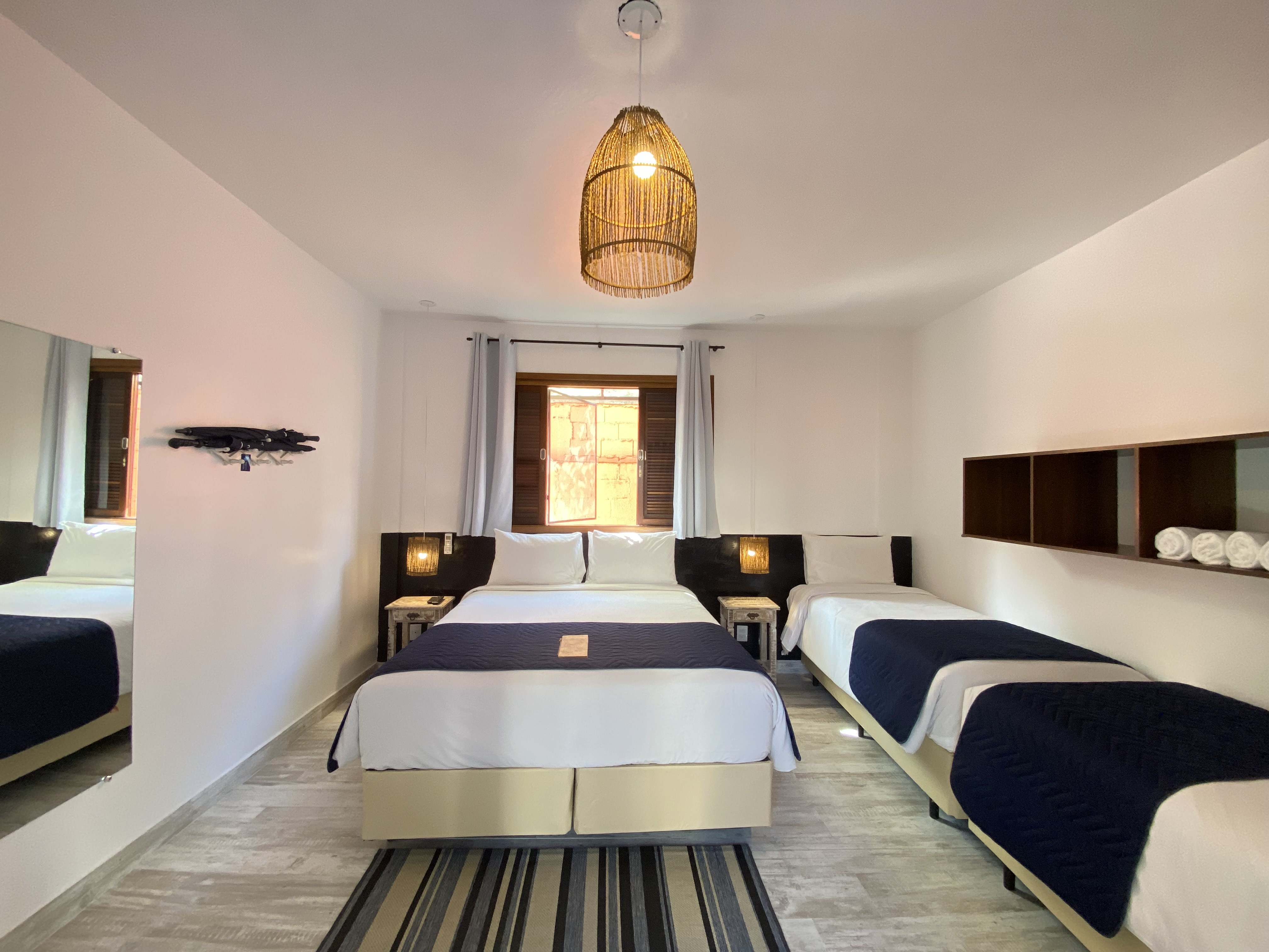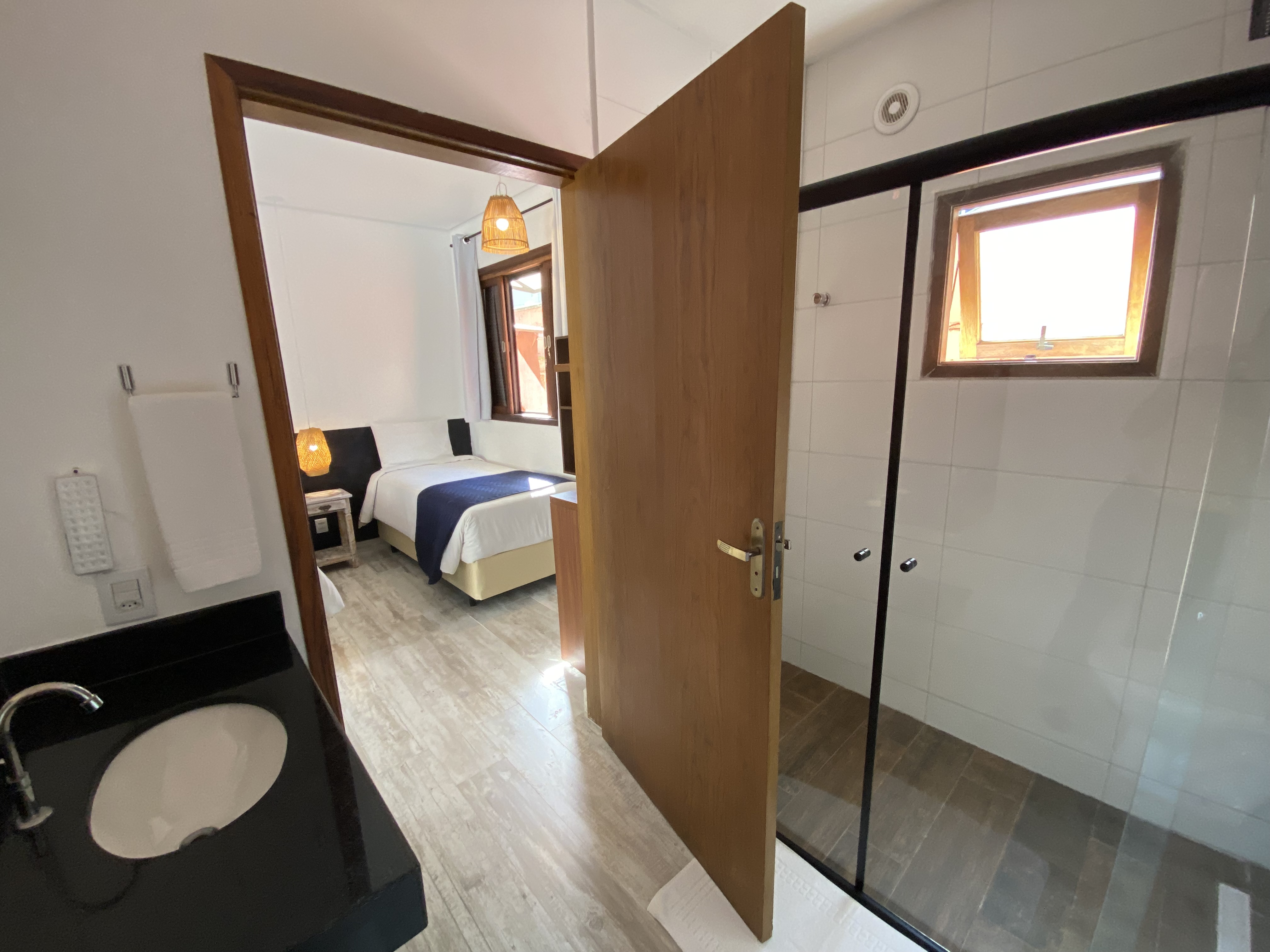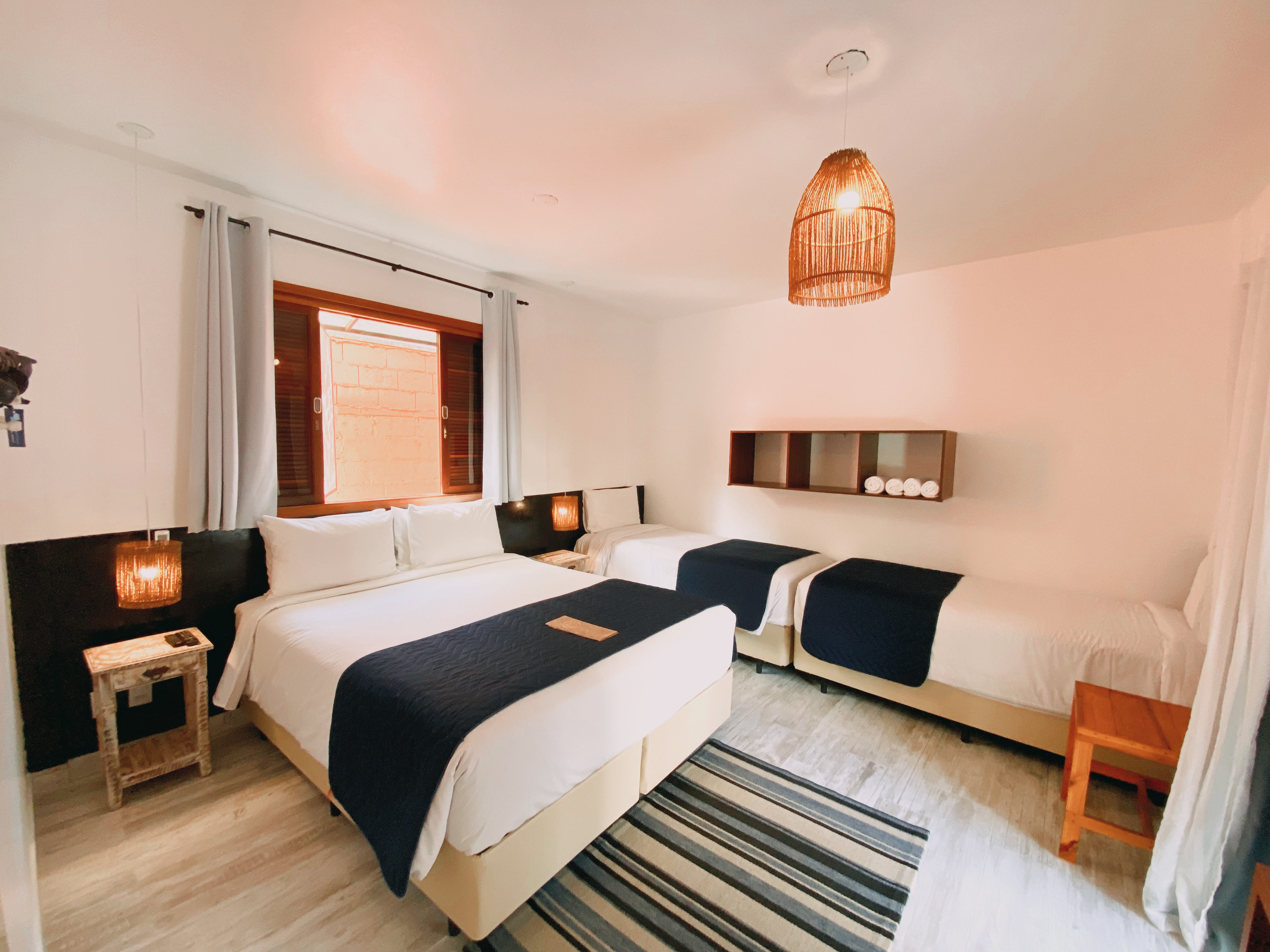Quarto com 16m², contendo 1 cama de casal + 1 cama de solteiro Este quarto é perfeito para pequenas famílias ou grupos de amigos, acomoda até três pessoas com conforto.