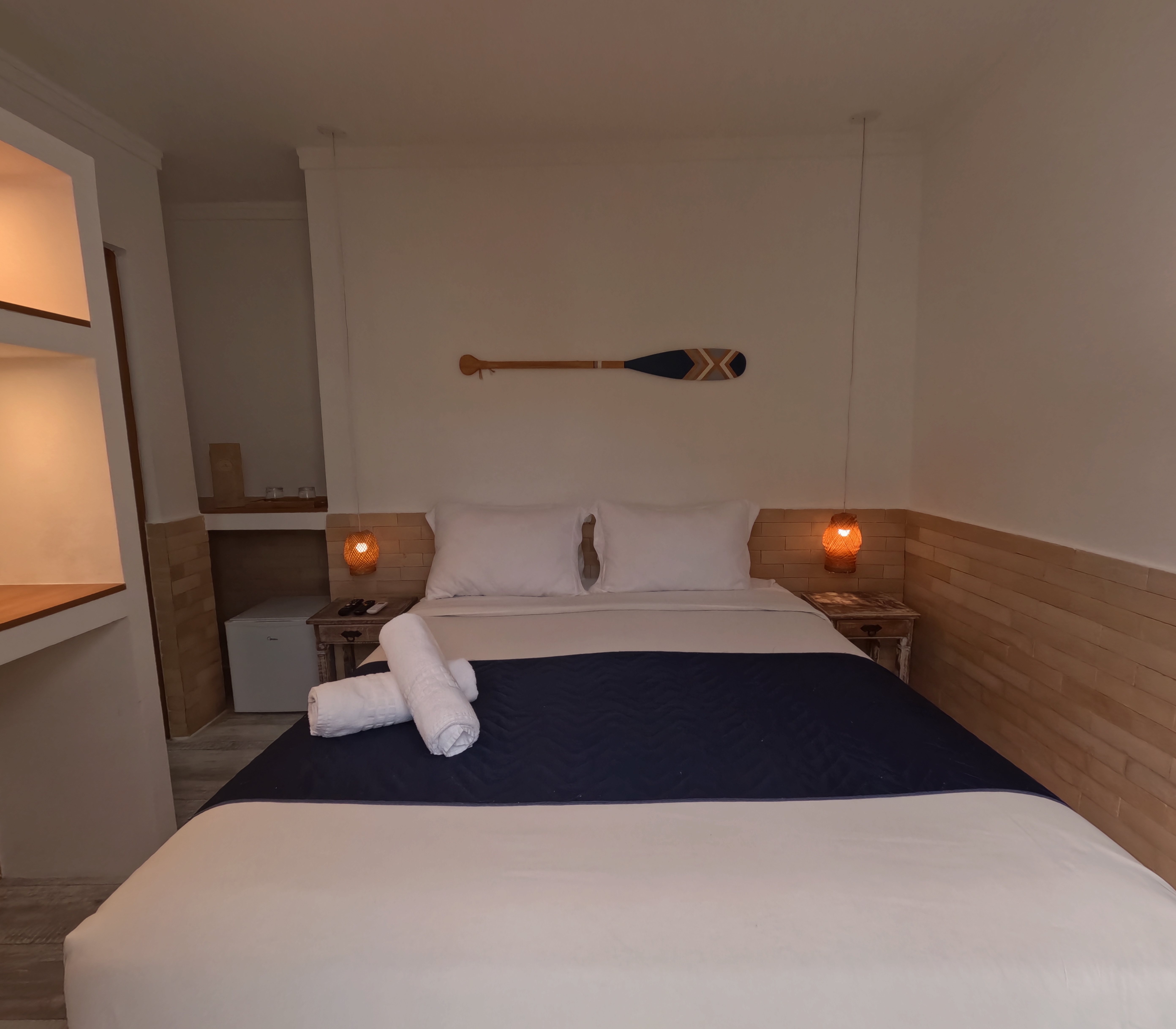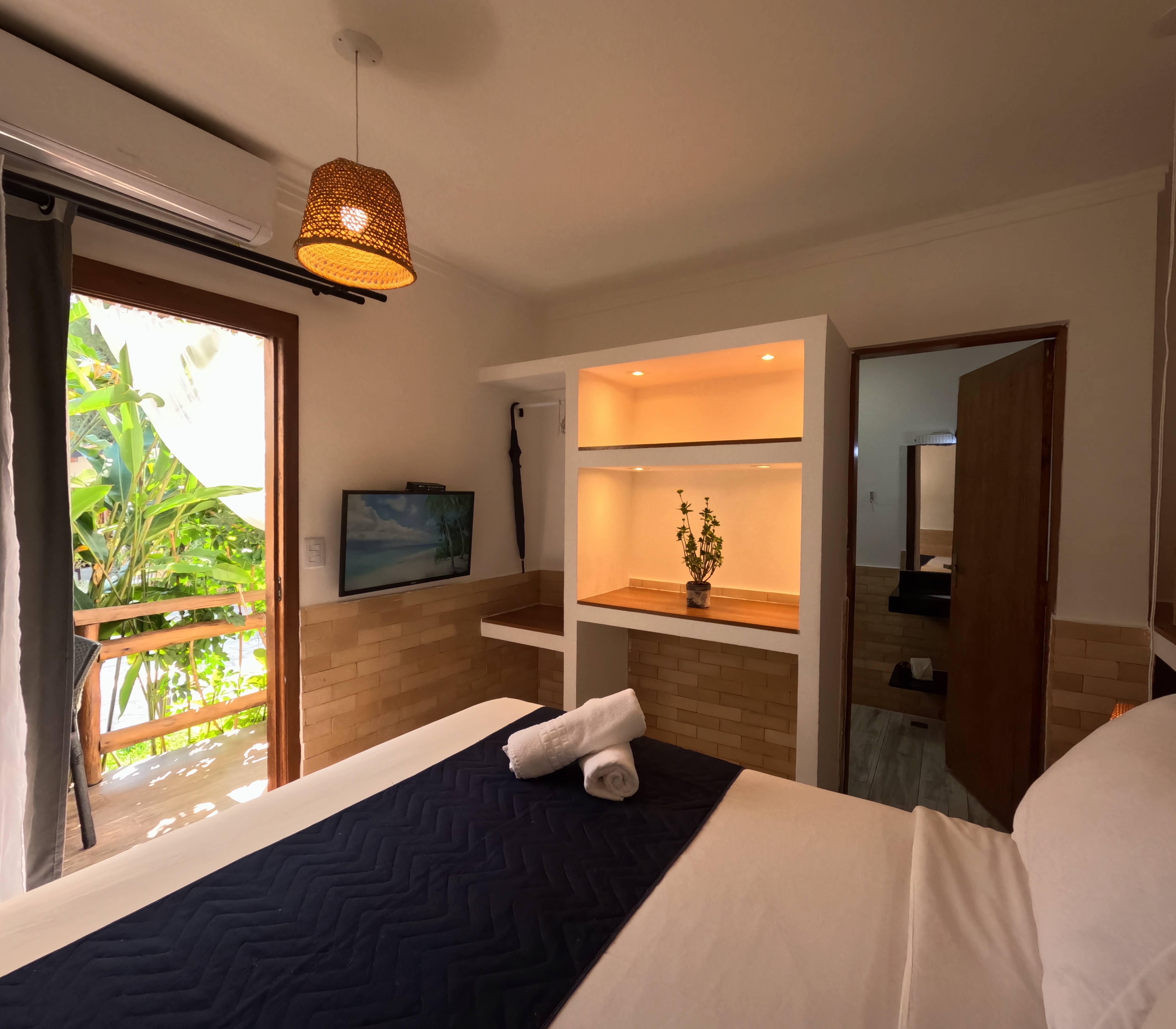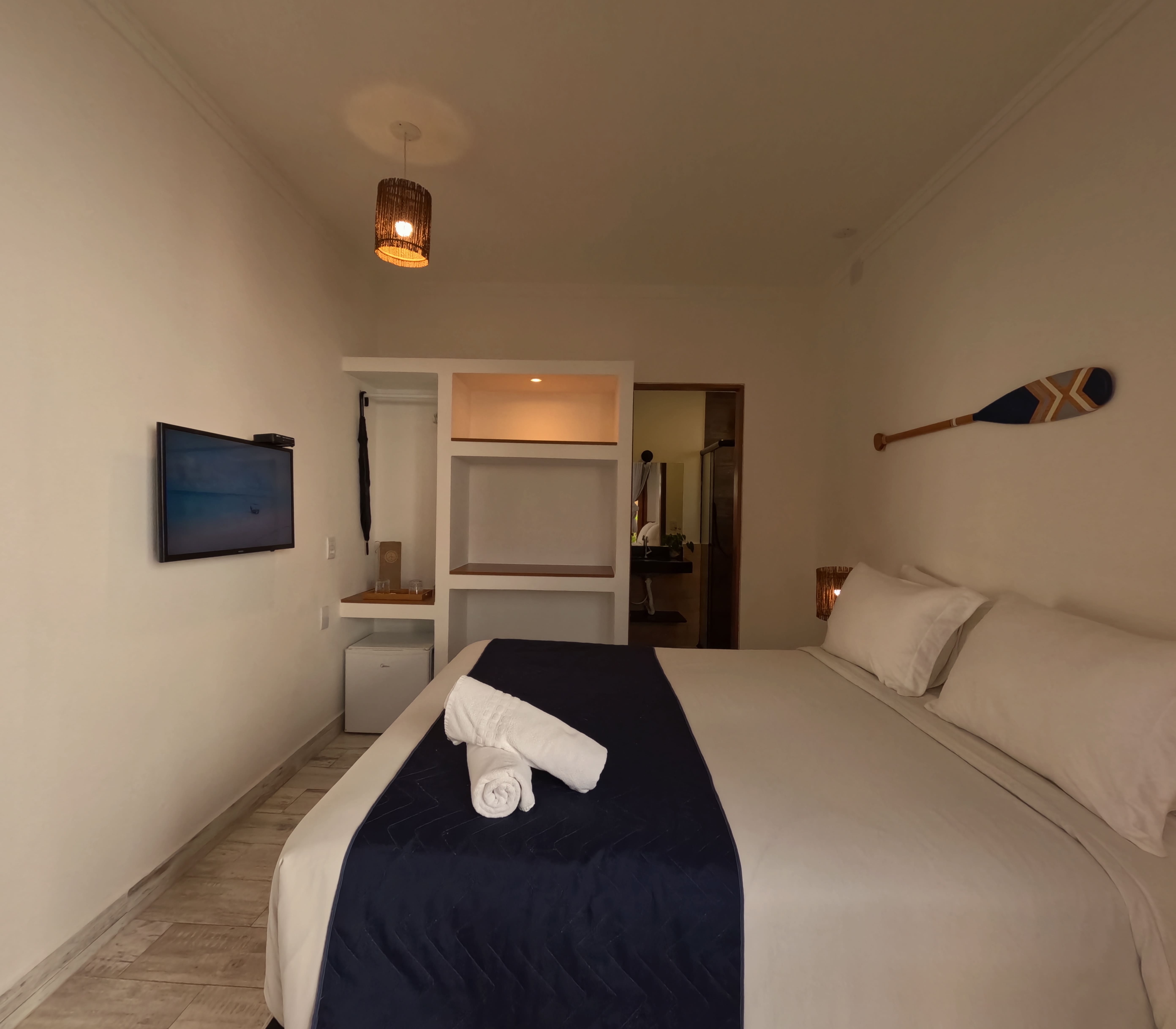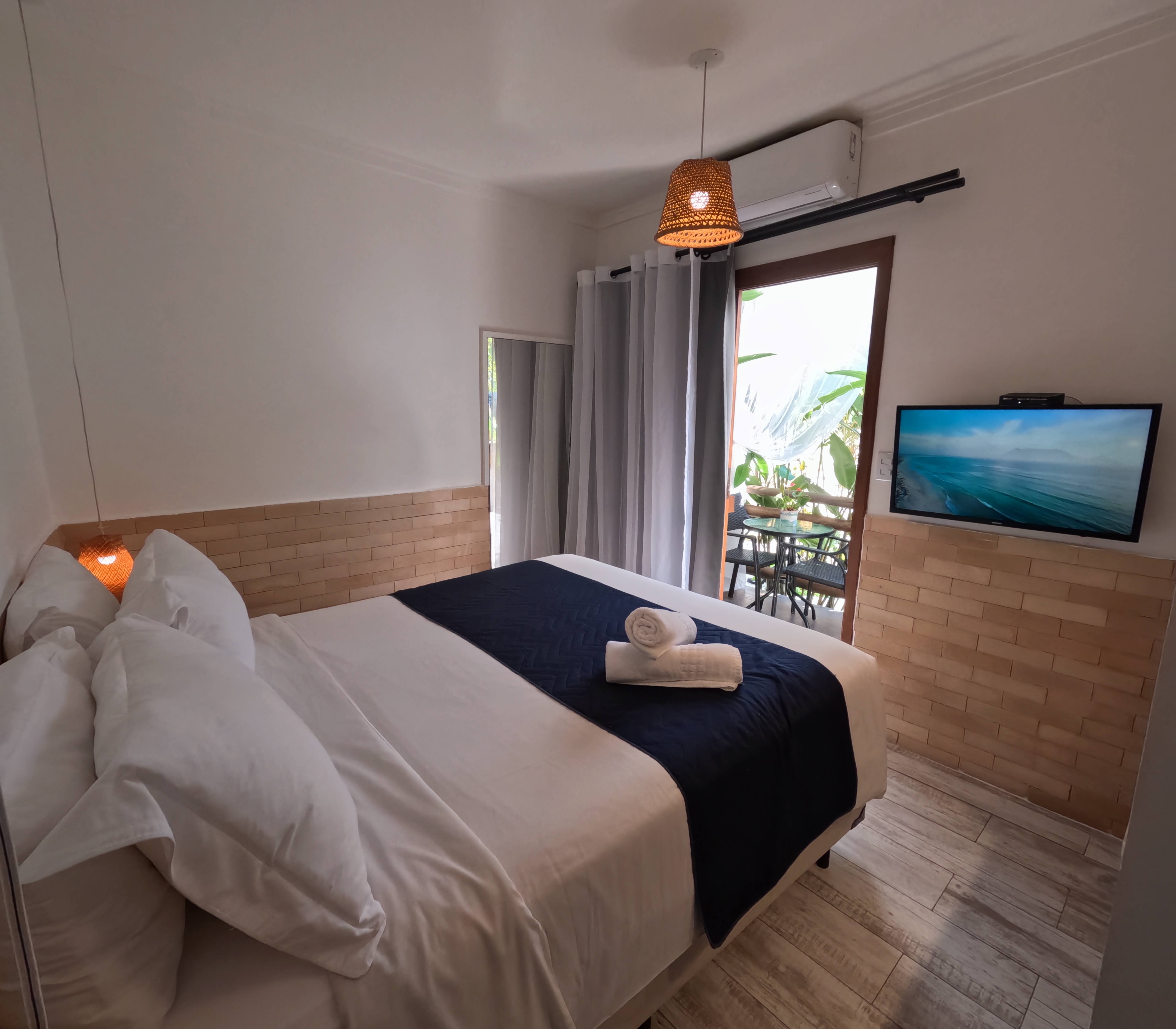 Quarto com 16m², contendo 1 cama de casal + 1 cama de solteiro Este quarto é perfeito para pequenas famílias ou grupos de amigos, acomoda até três pessoas com conforto.